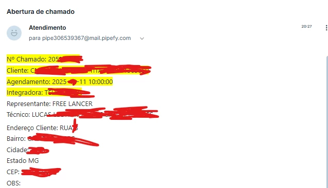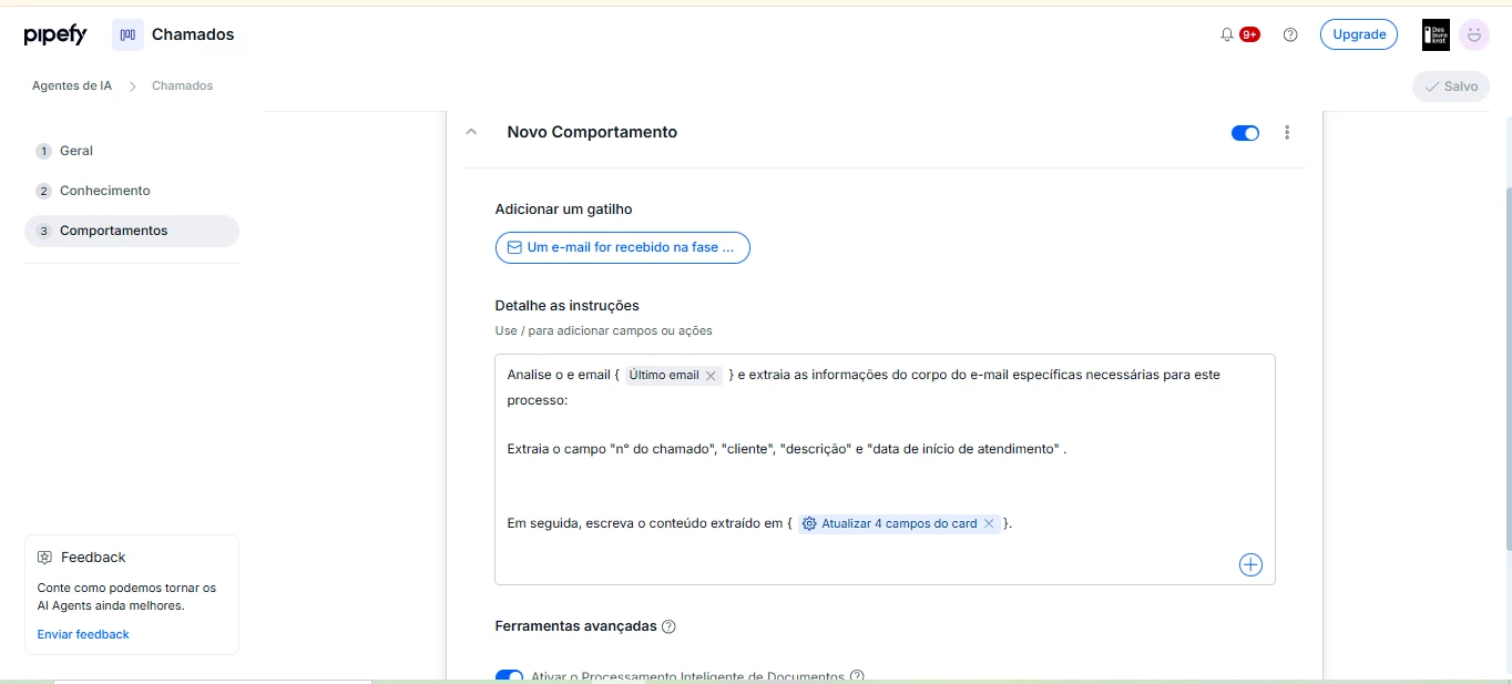Analise o e email { } e extraia as informações do corpo do e-mail específicas necessárias para este processo: Extraia o campo "n° do chamado", "cliente", "descrição" e "data de início de atendimento" . Em seguida, escreva o conteúdo extraído em { }. Alguém tem alguma solução?