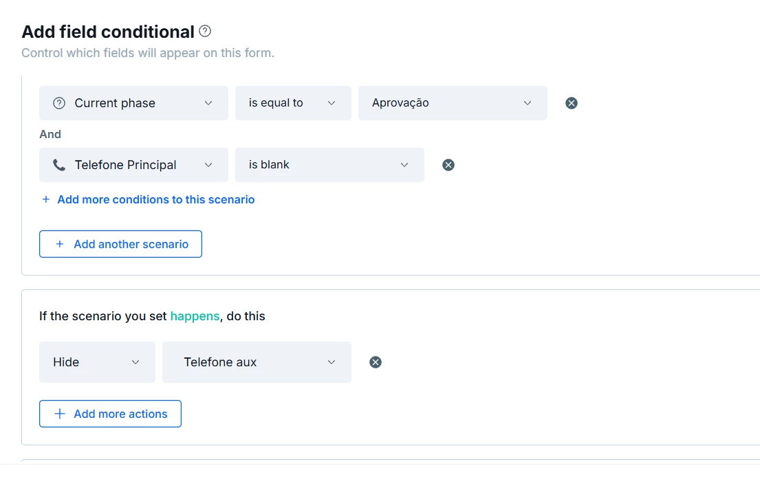 Alguém saberia me dizer se é possível ocultar campos que não forem preenchidos do formulário de um pipe? Eu não queria que aparecesse dentro do card.