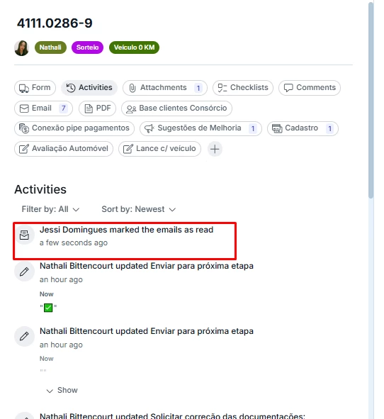 Criar uma trava para que quando algum usuário abra e-mail ele só marque como lido somente pelo responsável do card: