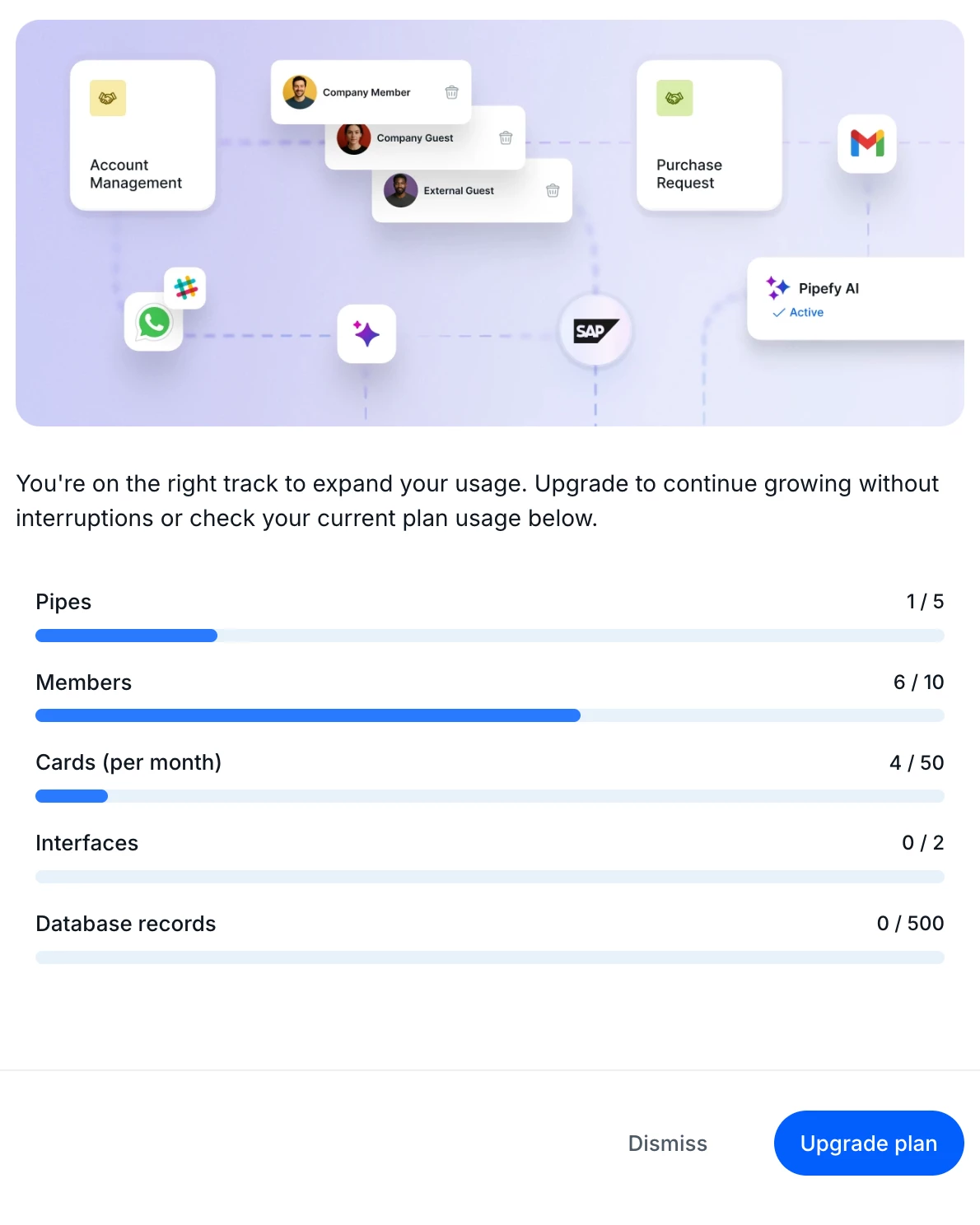 I know I'm on a free plan and I exceeded my free usage quota. I proceeded to delete any useless information and I am now under the usage quota. However, I cannot access the pipes and still get the usage statistics when I try to, except I have no red bars anymore.