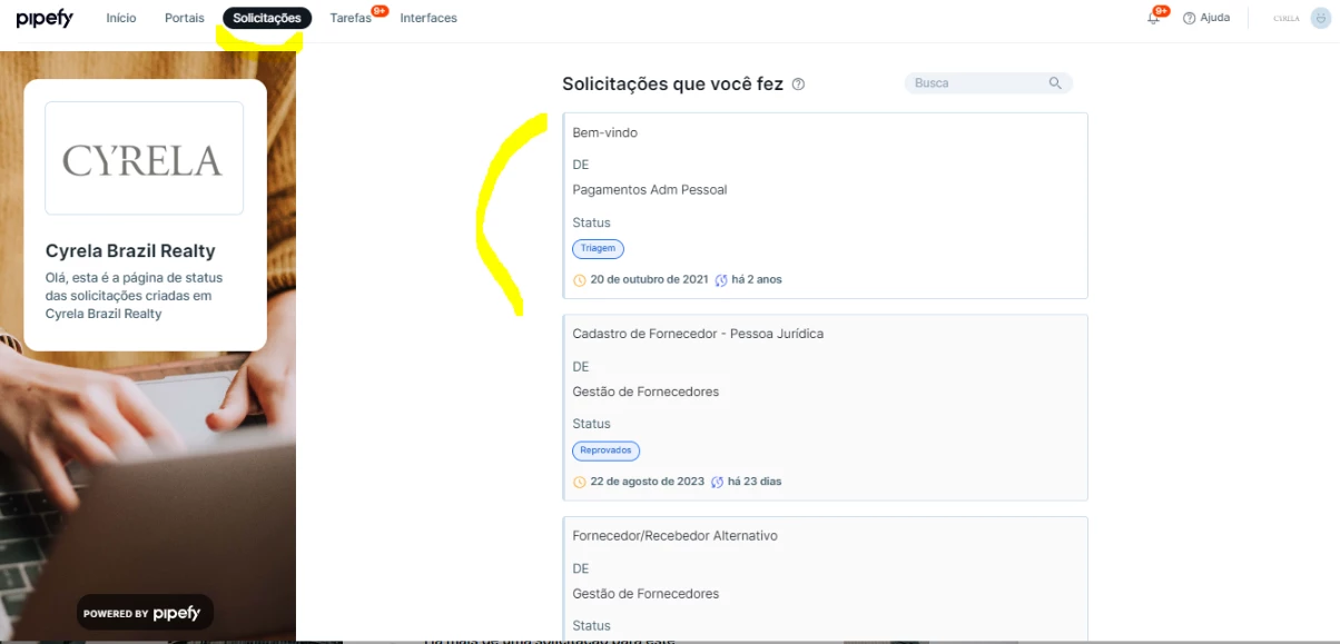 Enquanto isso, de fato, acho que a nova feature de Interfaces mencionada pelo @marcosmelo pode te ajudar, dado que ela possui mais capacidades de personalização das informações que você deseja mostrar do que a área padrão de solicitações.