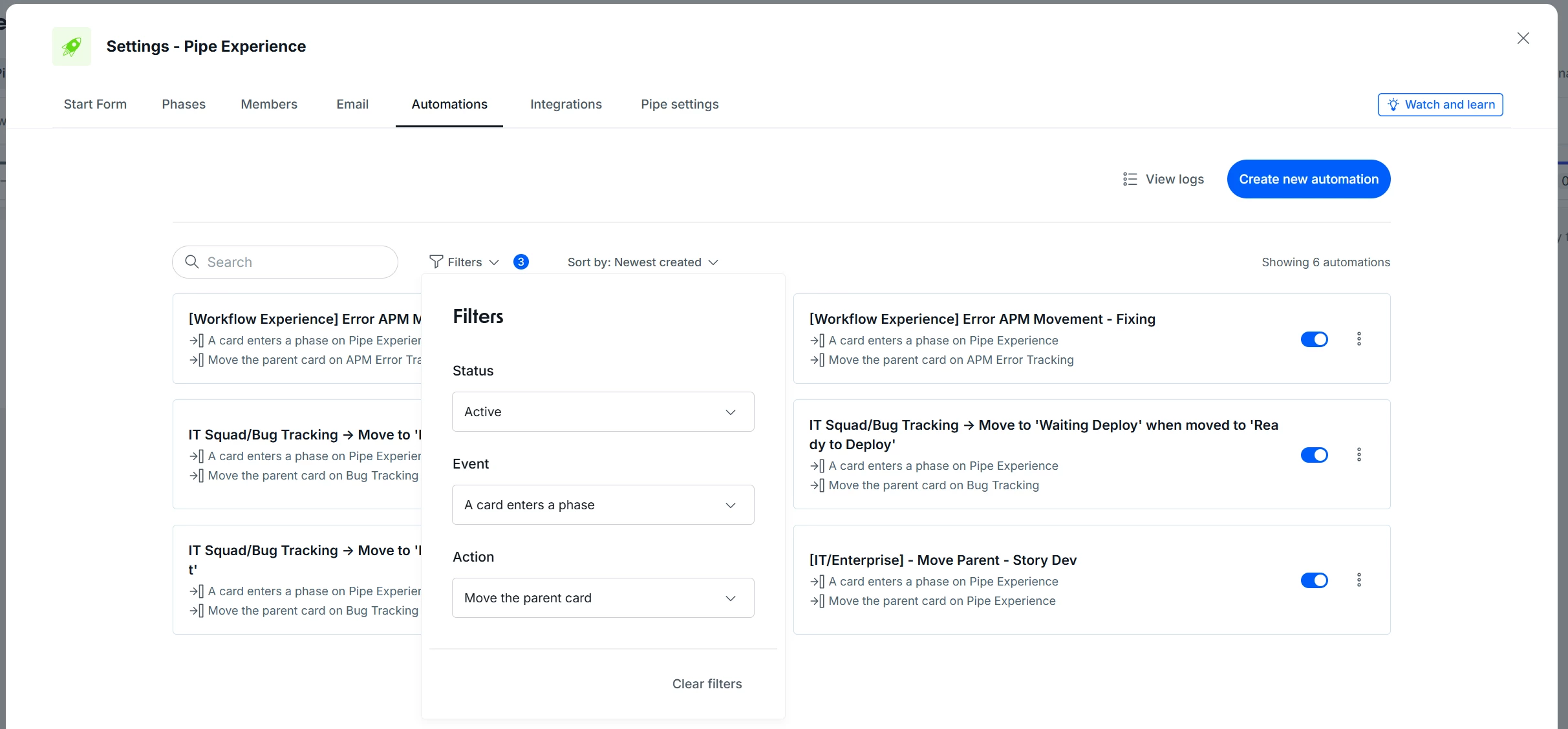 - Process Visibility: Quickly understand which automations are affecting each stage of your workflow.