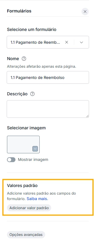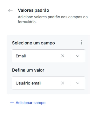 O que são os Valores Padrão? Essa funcionalidade permite que você preencha automaticamente um ou mais campos com dados específicos. Ao acessar esse formulário, esses campos já conterão os valores que você escolher, como o nome ou e-mail do usuário.