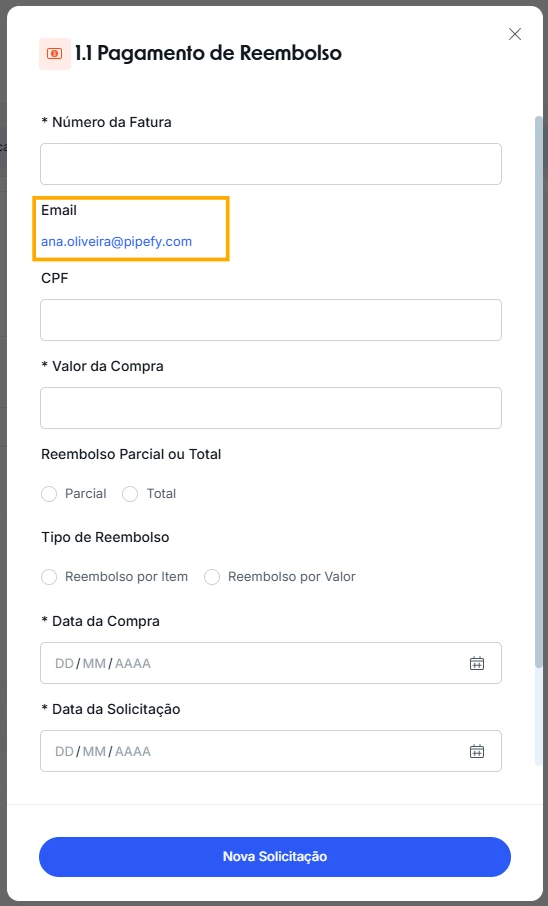 What are Default Values? This feature allows you to prefill one or more fields with specific data. When accessing this form, these fields will already contain the values you choose, such as the user's name or email.