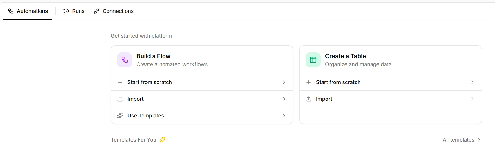 As part of our ongoing improvements to the Integrations Hub, we're bringing back the Templates feature — now with more visible entry points integrated into the platform's navigation.