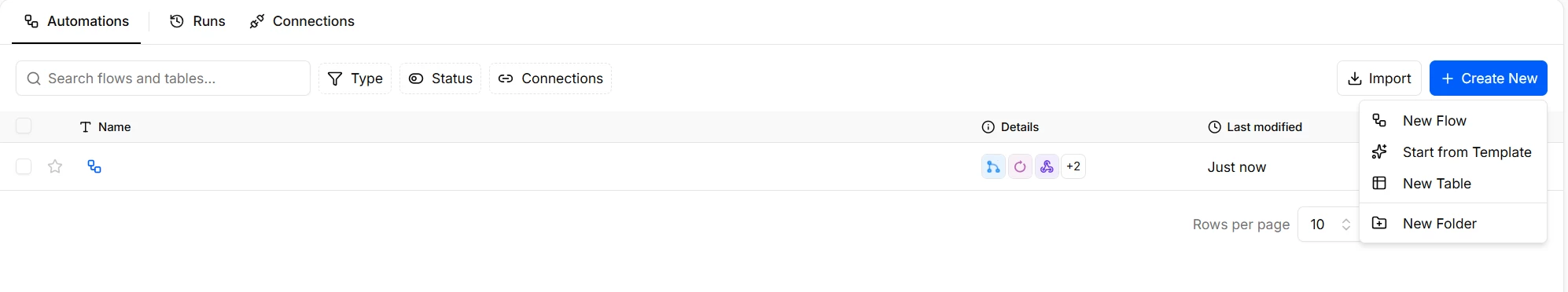 A funcionalidade está disponível em dois pontos da interface, tanto para quem está começando quanto para quem já tem flows criados.