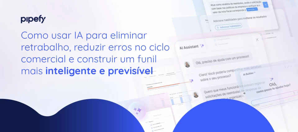 O CRM AI Studio da Pipefy foi desenvolvido para transformar controle em inteligência. AI Agents executam tarefas, analisam contexto e orientam decisões ao longo de todo o funil — da qualificação ao onboarding.