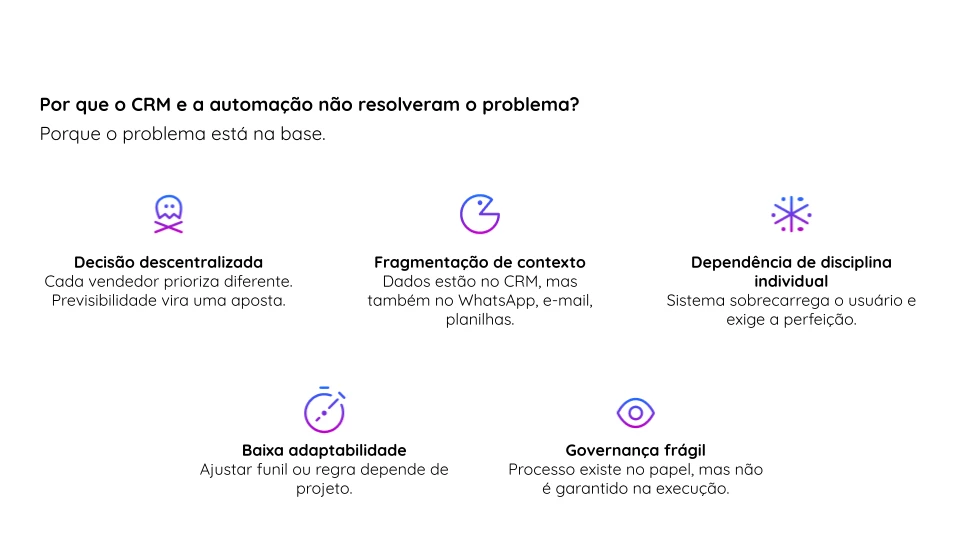 O resultado é um cenário em que o CRM deixa de ser um motor de receita e passa a funcionar como sistema de fiscalização.