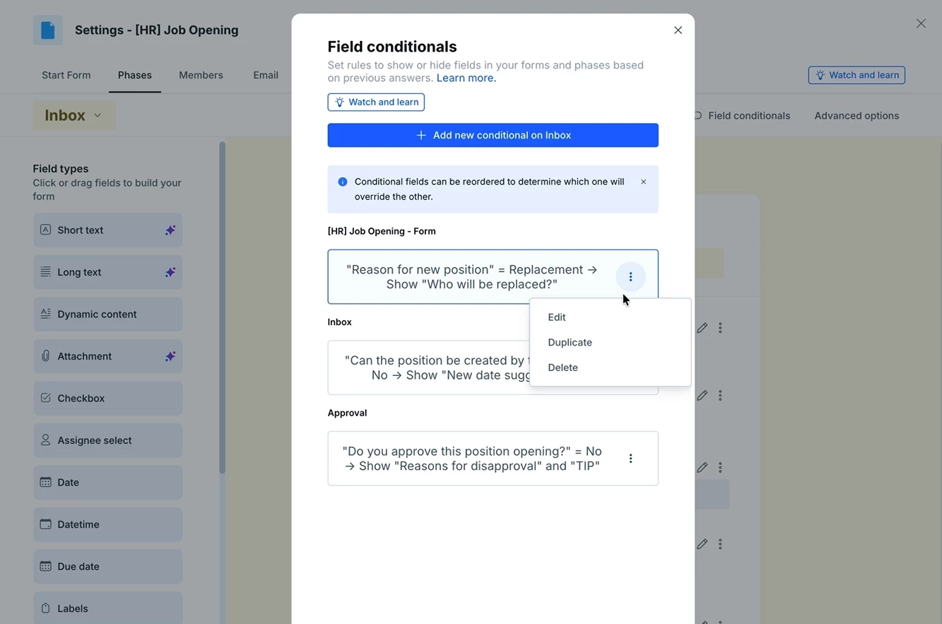 You can now duplicate conditionals in your forms, making it easier to create and manage visibility rules in complex pipes.